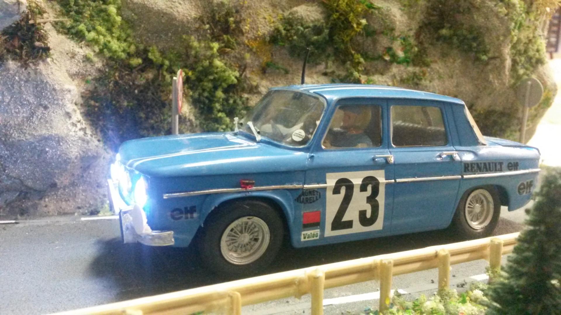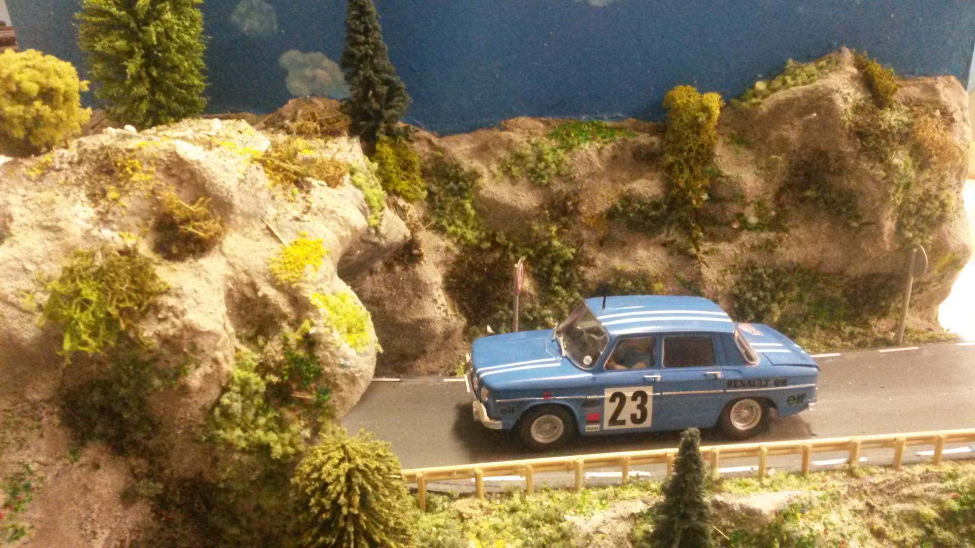 Ce diorama représente le passage d'une R8 Gordini. Le décor a été composé de polystyrène recouvert de bandes plâtrées, la végétation a été réalisée avec du flocage. La voiture provient d'une boite HELLER que nous avons monté et mis l’éclairage aux phares. L'équipage provient de la marque de GF MODELS que nous avons modifié pour leur donner un effet de réalisme. Les accessoires ont été fabriqués.